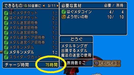 ※ここで錬金しちゃうと基本の時間(メタキンは150時間)かかって長いので、この後時短術を使っていきます。