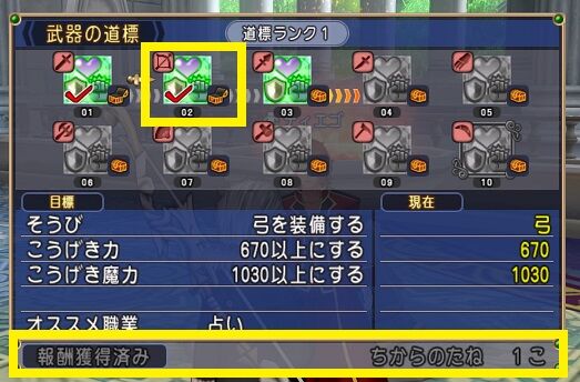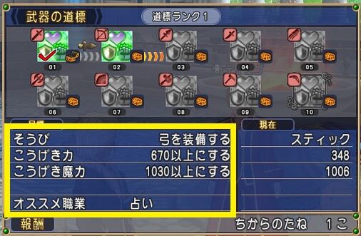最新の弓(輝天の弓)のこうげき力2つ失敗品で約50万Gだけで済みました♪♪