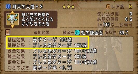 Lv105「魔界の大盾」の上位版で、さらに光10%減も付いているので即買いしました!