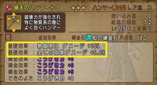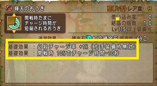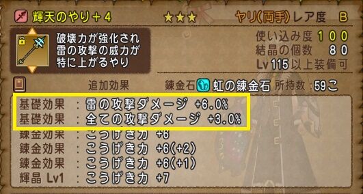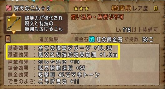 正直言うと全ダメージが+5%・特技ダメージ+20が付いている前武器「シェキナーの弓」の方がダメージは出るでしょう。