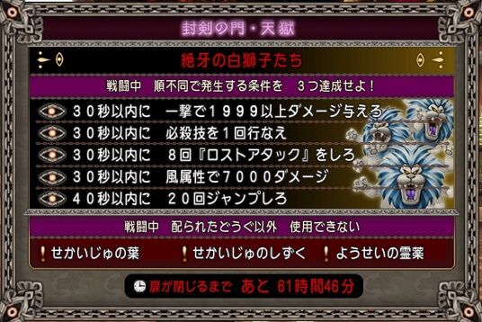 今回の敵は「絶牙の白獅子だち」です。