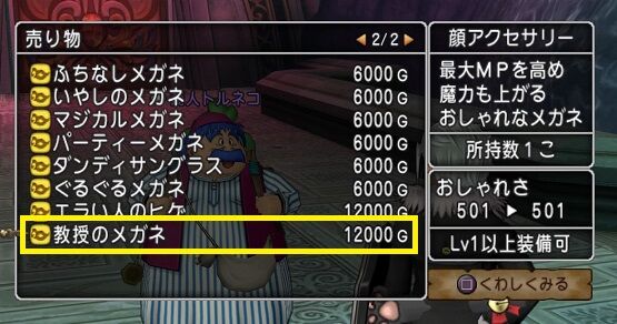 教授のメガネは最大MPが上がる数少ないアクセの1つです。
