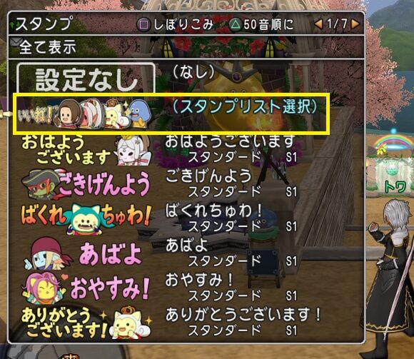 そこでスタンプが重なっている項目:青文字の(スタンプリスト選択)を決定。