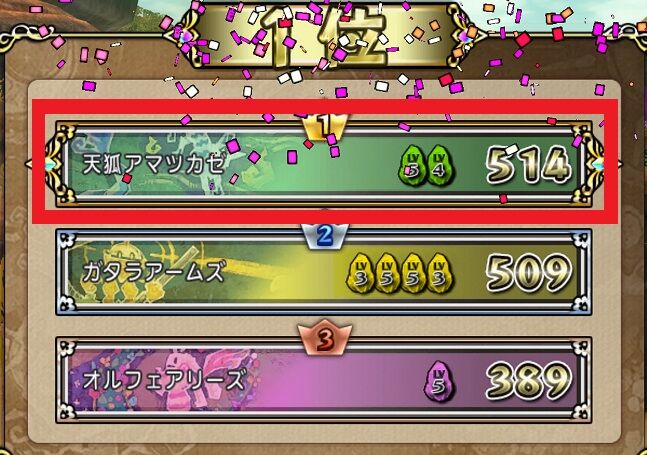 この対抗戦で、所属チームが1位を10回取ったら大会終了後に50万G貰えるそうですよ!