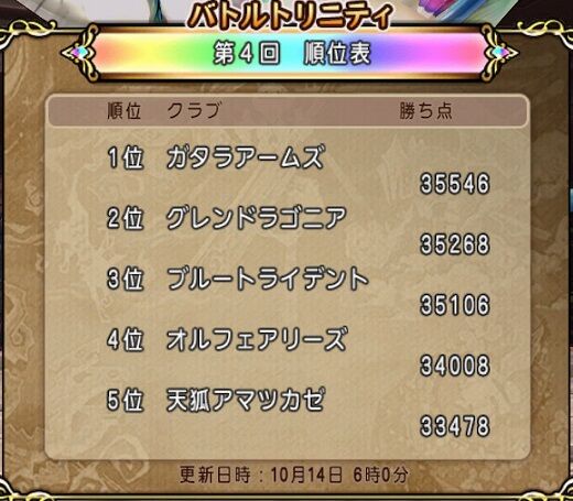 なお、10/14(水)6:00時点での順位はこちらになります。