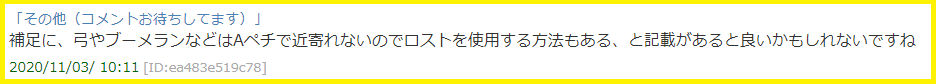 ※弓やブーメランなど飛び道具(武器)の場合はAペチでは近寄れない為、「ロストアタック」で近寄るというテクニックがあります。