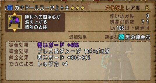 体上を呪い100にして、ブレス耐性は宝珠と合わせて18%。