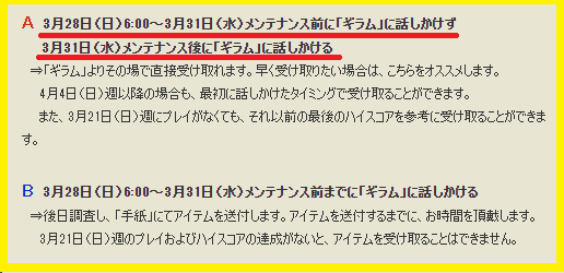 来週のバージョンアップ前に話しかけっちゃって、更に今週分(3/21~)をやっていなかったら、これらの救済アイテムは受け取れません