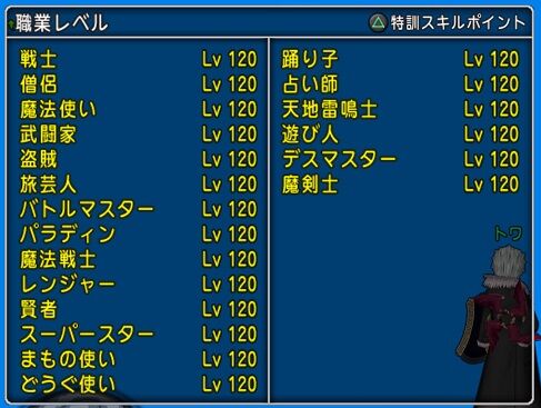 各職業上げるのに必要な経験値は約265万。
