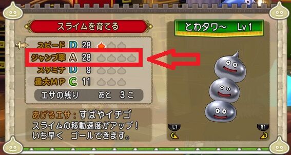 ジャンプ率は元からAなので、スタミナと最大MPをAまで上げていくイメージだと良いかと思います。
