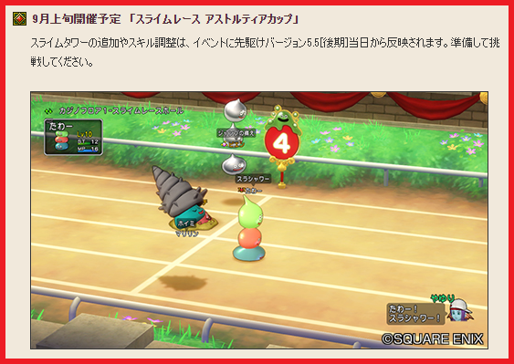 後日開催されるスライムレース・アストルティアカップに先駆けて、Ver5.5後期実装時から「新スライム種」が追加されています!!
